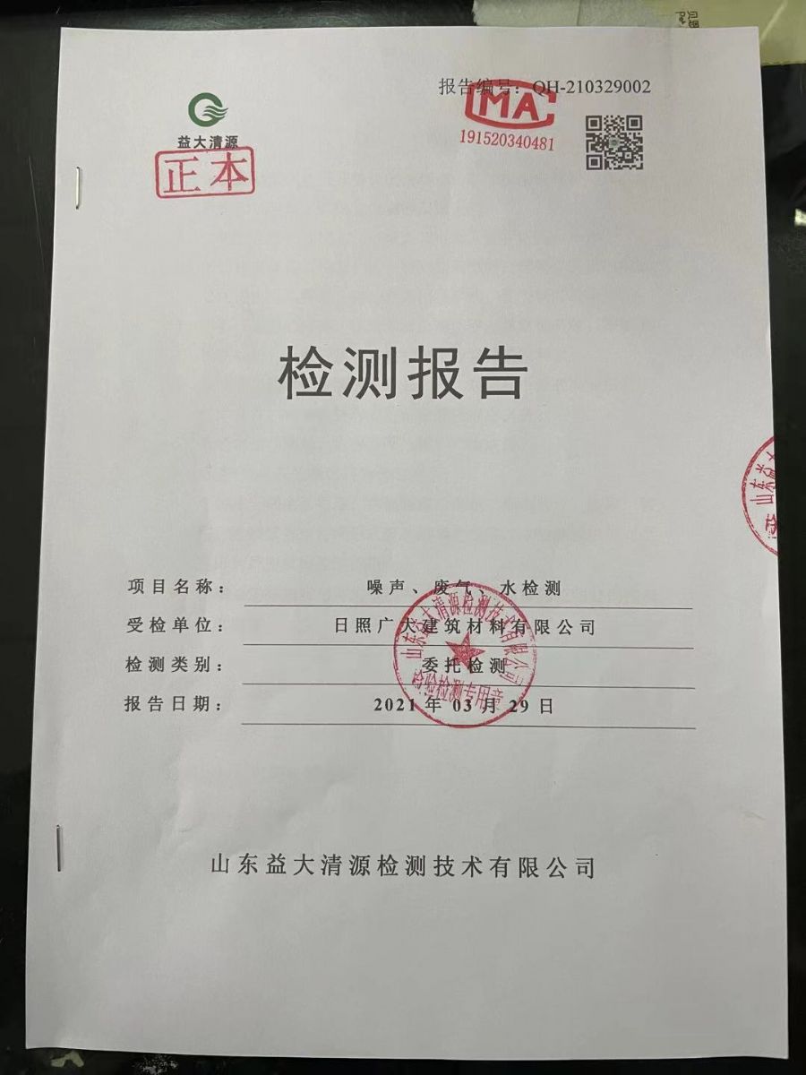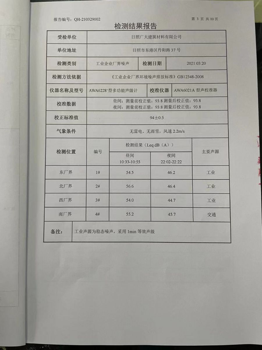日照廣大建筑材料有限公司2021年第一季度環(huán)境信息公開